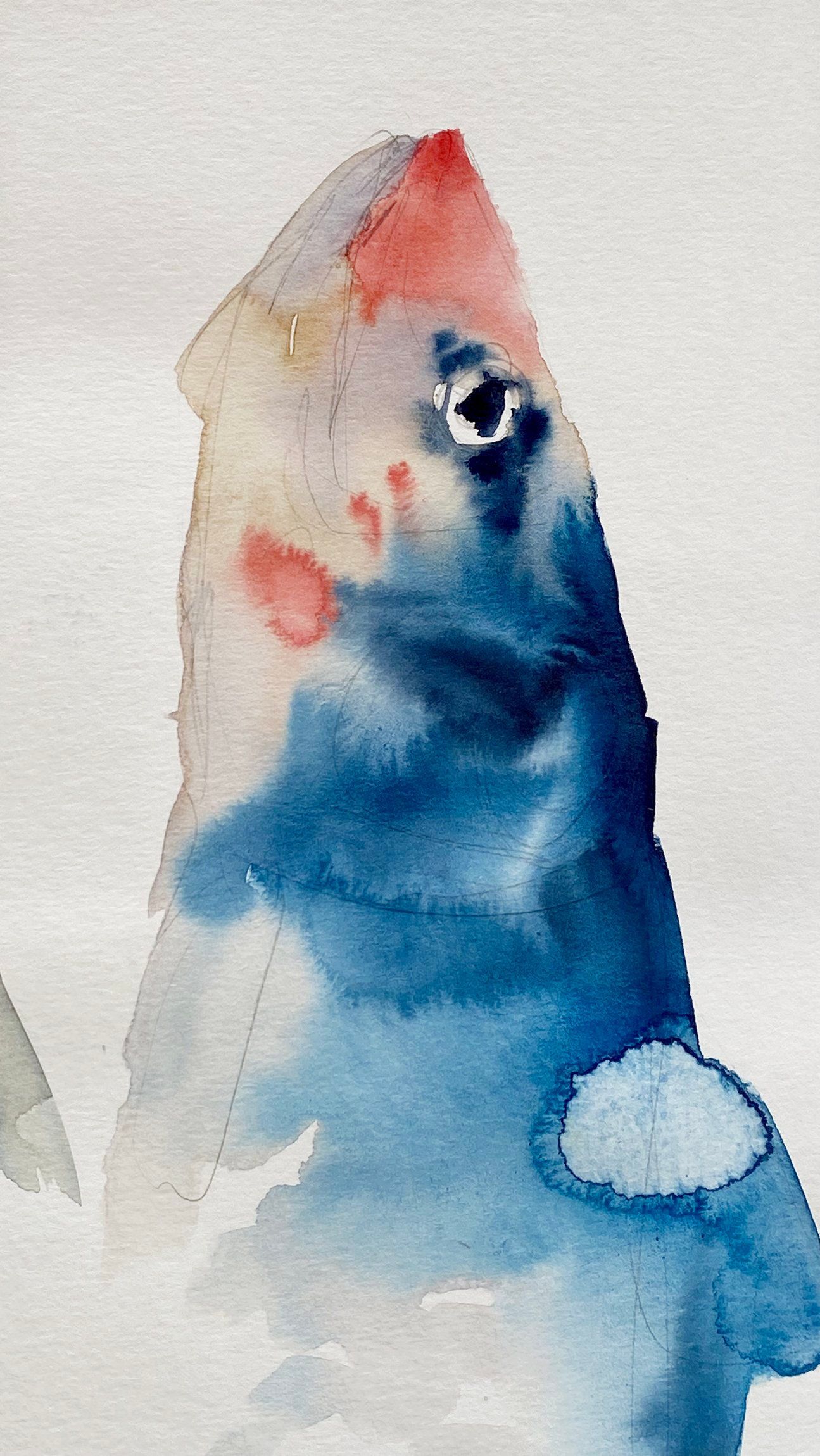 I love to improvise with the path and lines left by the tool I use on clay or plaster material, and to ponder on how what could be a wrong movement with the tool, can suddenly become an eye or a mouth. The same thing with painting with watercolors; from one stroke... a work can almost take on a mind of its own, creating shapes and figures by itself, opening up new possibilities and causing the outcome to be less predictable…